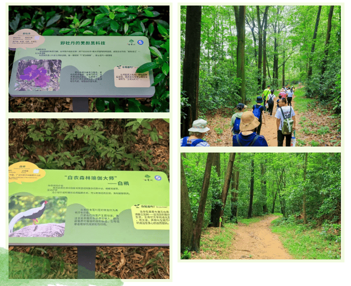 沿路设置森林浴功能介绍标识牌、动植物科普牌,为市民游客带来专业的生态与健康科普。